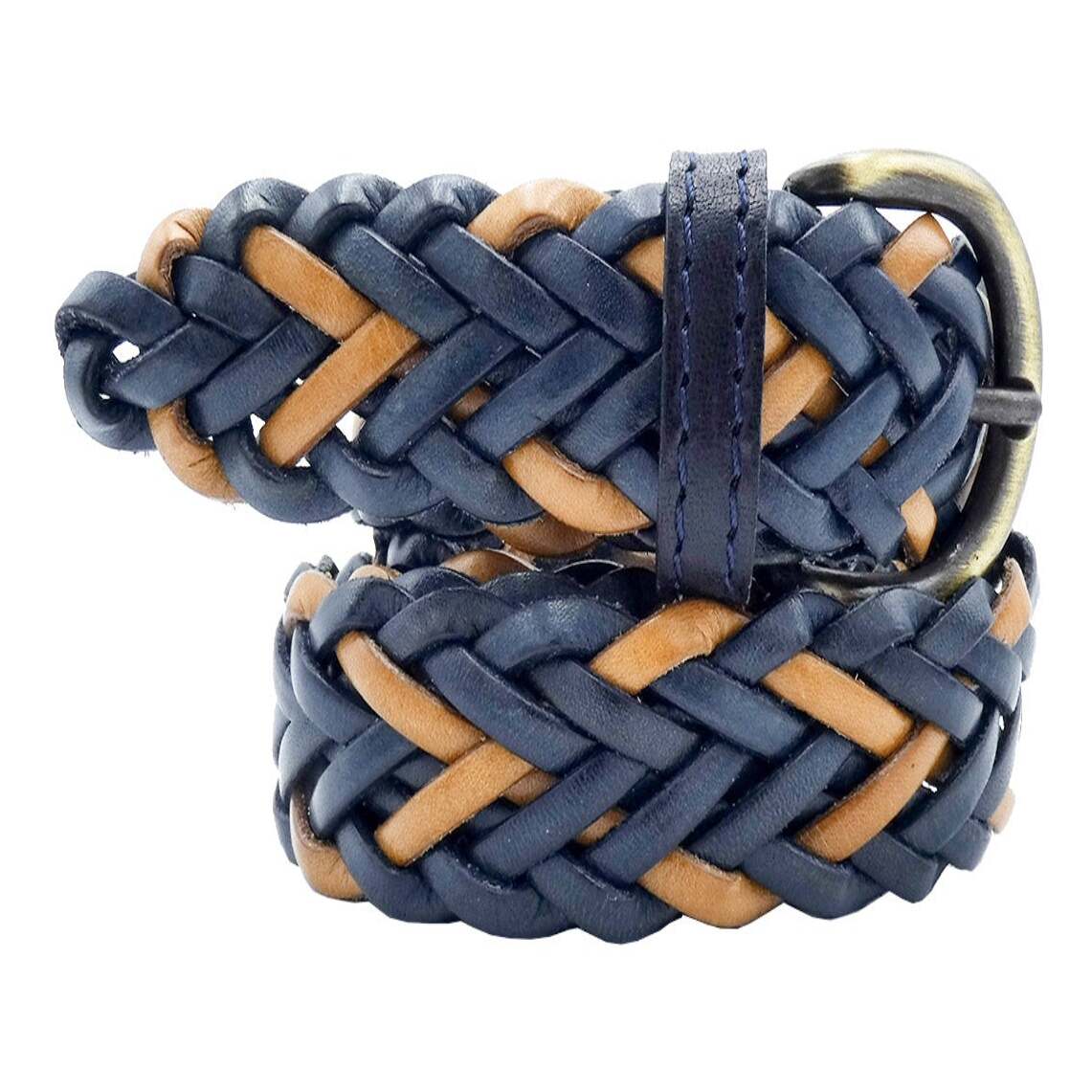 Cintura in cuoio da 3 centimetri intrecciata a mano con fibbia artigianale in zama in due varianti: nickel satinato e ottone antico.