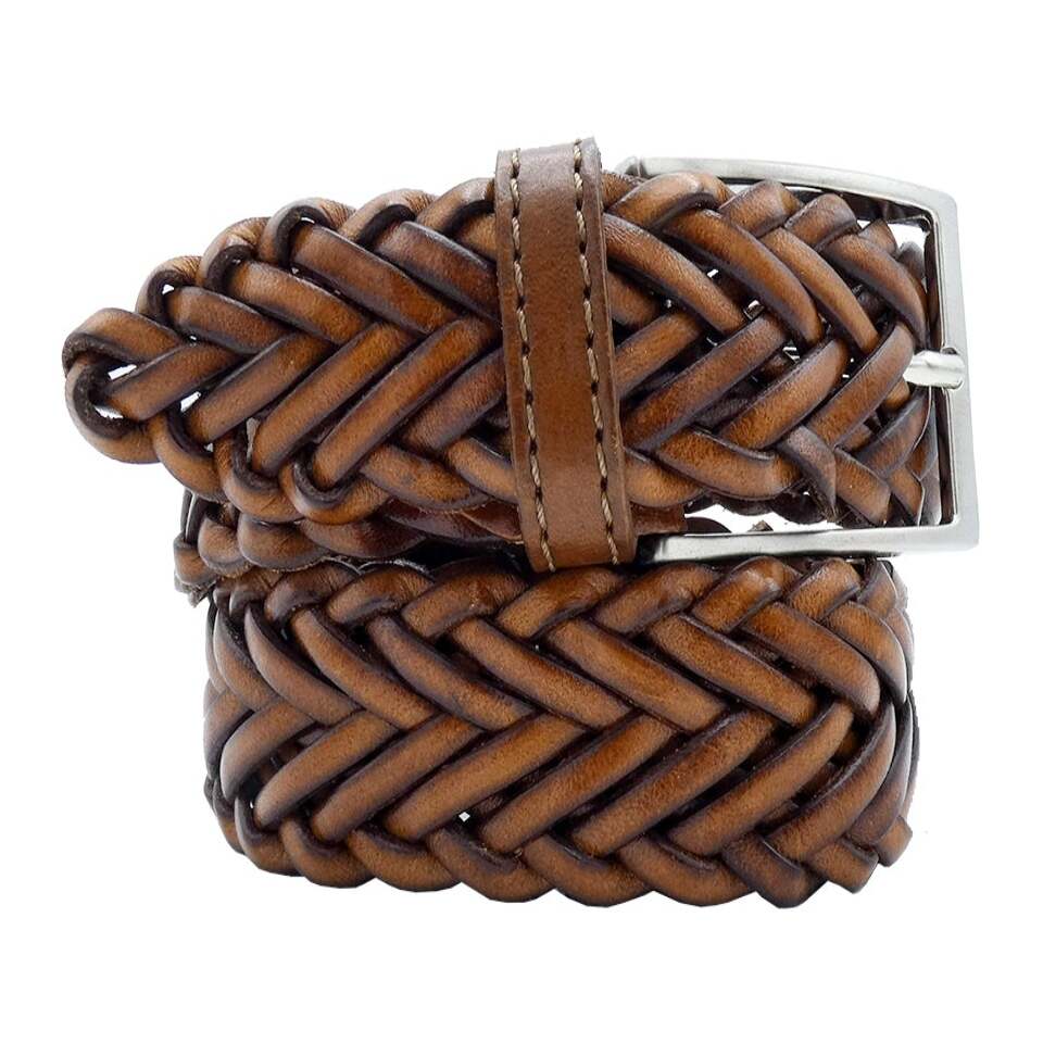 Cintura in cuoio da 3.5 centimetri intrecciata a mano con fibbia artigianale in zama nickel satinato.
